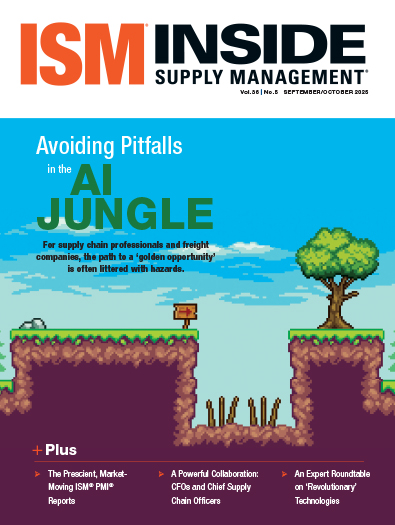 Inside Supply Management® is a leading publication for those within the procurement/sourcing and supply chain profession. Our magazine covers essential news, innovative trends, ISM® PMI® Reports coverage, research analysis, leadership profiles, career strategies and much more.